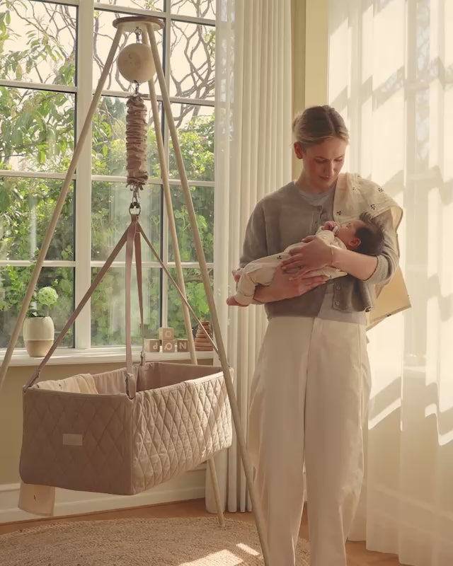 Stylish, safe, and simple – the tripod stand from Moonboon is the perfect place to attach your baby's favorite sleep spot anywhere you like, so you can always keep an eye on your little one as they dream.