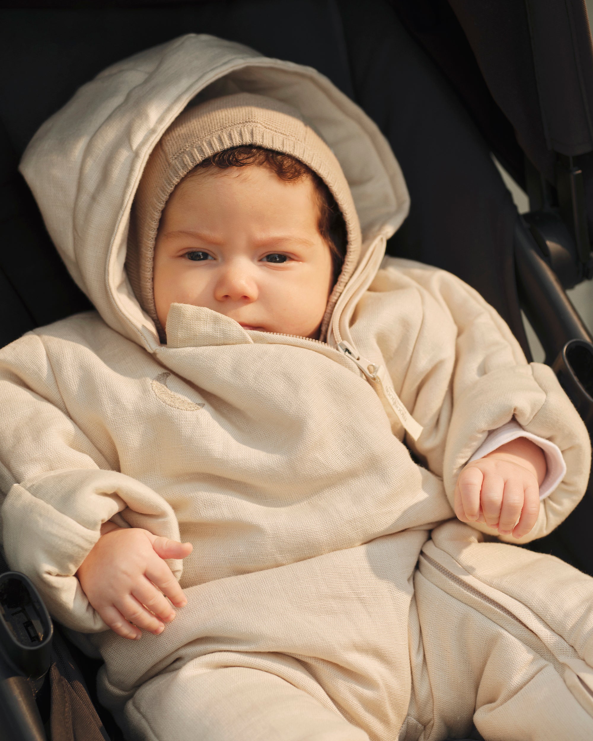 Our soft bunting suit is perfect for stroller rides or walks in the baby carrier, combining style and comfort in every detail.